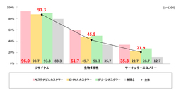 ※「継続購入ブランド(飲料、食品、化粧品など10カテゴリ)が5つ以上あり」「リサイクル活動・回収活動参加製品が1つ以上ある」、継続購入性とリサイクル活動・回収活動への参加意識の両方が高い生活者を、当社では「サステナブルカスタマー」と定義。