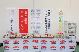大会初日は参加選手を対象に、バランスよく食べることの大切さを伝えるスポーツ栄養教室を実施します。大会期間中には、試合前後の栄養補給をサポートするため、青森県産のお米「青天の霹靂」を使用したおむすびやカットりんごをはじめ、全農の商品ブランド「ニッポンエール」商品やAコープ商品であるたまごスープなどを取りそろえた「もぐもぐブース」を設けます。