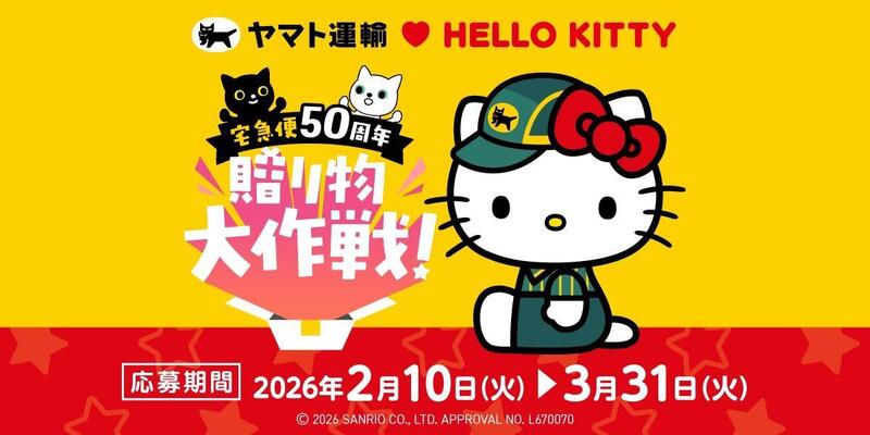 宅急便50周年の感謝を込めて、ハローキティとお届けする「宅急便50周年贈り物大作戦!」を2月10日から開始