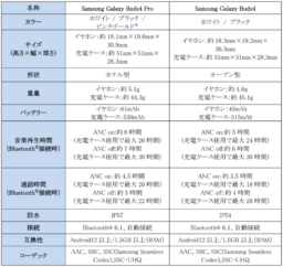 <主な仕様 : 「Samsung Galaxy Buds4 Pro」「Samsung Galaxy Buds4」>