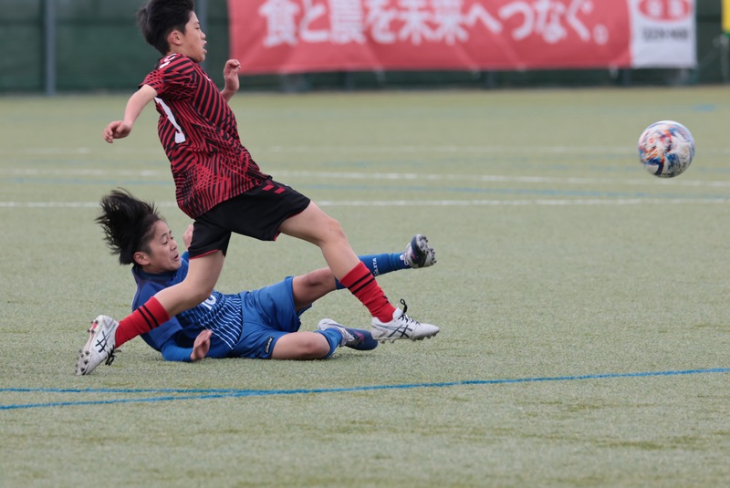 決勝戦 ツエーゲン金沢(赤ユニフォーム)と長岡JYFC(青ユニフォーム)