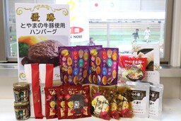 とやまの牛豚肉使用ハンバーグ、富富富パックご飯 ニッポンエール 呉羽梨グミ |
