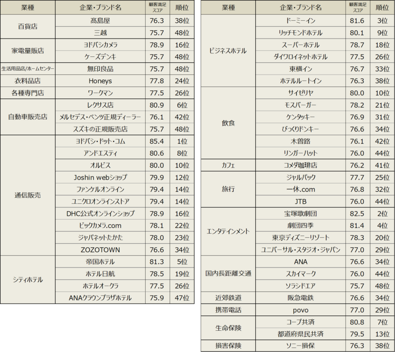 ※業種内は顧客満足スコアの降順で表示