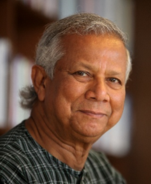 ノーベル平和賞受賞者(2006年)。バングラデシュの経済学者・社会起業家。グラミン銀行創設者として、マイクロクレジットによる貧困削減モデルを世界に広めた。2024年より2026年2月までバングラデシュ暫定政府首席顧問を務め、国際社会における平和と開発の最前線に立ち続ける。