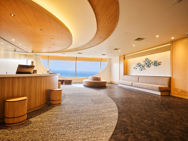 ロビーエリアは、熱海の景観を額縁のように切り取る「阿多美の窓」をデザインテーマに刷新しました。また、自動チェックイン機を導入することで、よりスムーズなチェックインを実現。到着後すぐにくつろぎの時間をお楽しみいただけます。