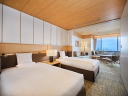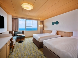 ツインルームのトリプル対応や最大5名で宿泊できる客室など一部客室をリニューアルし、ファミリーやグループ旅行など多様な滞在スタイルにお応えいたします。また、約77㎡の露天風呂付客室を新設。窓の外には開放的な相模灘の景色が広がり、どこまでも広がる海と空の景観を眺めながら、プライベートな空間で温泉を楽しめる開放的な客室となっています。