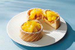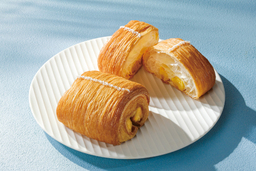 4種のフルーツ(マンゴー、パッションフルーツ、レモン、バナナ)を使用したパバナピューレとカスタードクリーム、アーモンドクリームをあわせて巻き込んだ、フルーツの甘酸っぱさをお楽しみいただけるクロワッサンです。ハレクラニベーカリーで提供している商品をアレンジしてご用意いたします。