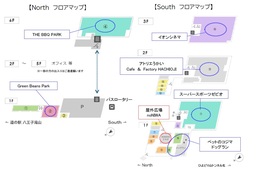 「North」(A街区) は、最新AI×ロボティクスで進化するイオンネクストのCFC、「South」(B街区)は、IMAX®レーザーシアターを含む9スクリーンの 映画館に加え、お菓子作りを体験できる工房や大規模ドッグランの併設店舗など、地域に根差した賑わいの場を創出することをめざしてまいります。