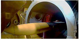 ① 極超音速実験機の燃焼実験(試験設備でマッハ5飛行状態を模擬)ⒸJAXA