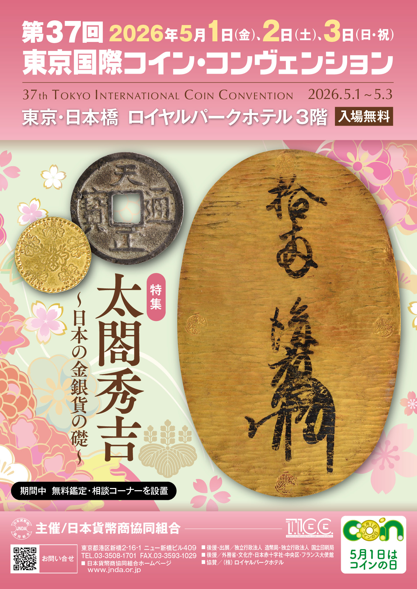 5月1日(金)から5月3日(日・祝)までの3日間、東京都中央区日本橋のロイヤルパークホテルにて、「第37回東京国際コイン・コンヴェンション(TICC)」が開催されます。(主催・日本貨幣商協同組合)