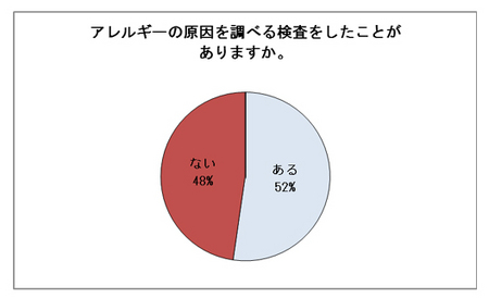 上記の結果のように、多くの方が幼少期に発症し、発症から長い付き合いになっているにも関わらず、アレルギーの原因を調べる検査を受けたことがなく、現在も原因を知らない人も約半数に上ることが分かりました。