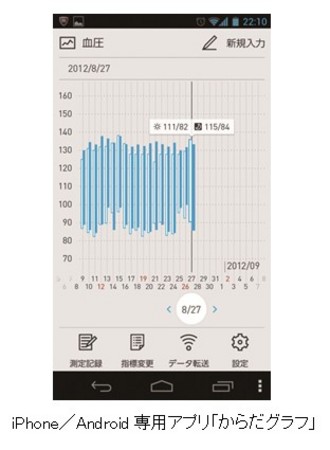 Bluetooth/NFC通信機能搭載で、血圧データを簡単転送