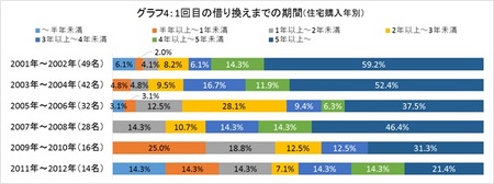 から1回目の借り換えまでの期間を聞いたところ、2001年~2004年に購入