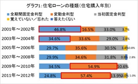 年~2012年に購入した人は半数以上が金利は上がらないと読んで「変動金