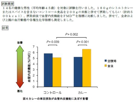 カレーの可能性をさまざまな角度から検証しているハウス食品から、昨年7月に「カレーの血管内皮機能改善効果を確認 カレー摂取による、動脈硬化予防の可能性」とのリリースが出ている。