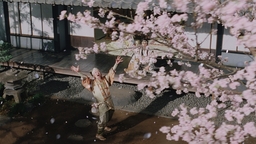 三太郎とかぐや姫が将棋をしているところへ、「桃ちゃーん!」とニコニコ顔で現れた花咲爺さん。「おー」と立ち上がった桃太郎が、親しげに花咲爺さんの方へ向かいます。「犬、借りちゃっててありがとね~」と、花咲爺さんはどうやら桃太郎から借りていた犬を返しに来たようで、浦島太郎が「え、誰?」と訊ねると、「花咲爺さん」と答えるかぐや姫。その言葉に、金太郎も「ここ掘れワンワンの」と納得します。犬を撫でながら「おかげで小判ドンドンでウハウハ!」と底抜けに明るい花咲爺さん。その姿を見て、「なんかイメージと違う」と浦島太郎が金太郎に囁くと、桃太郎が「あ、花じい、あれやってよ!」と何やらリクエストします。「はいはい」と軽快な足取りで庭先に出る花咲爺さん。「よっ!」と盛り上げるかぐや姫の掛け声に続いて、腰にぶら下げた袋から灰を取り出すと、「ドーン!」という掛け声とともに、庭先の木に向かって、ひとつかみの灰を放り投げます。「サイドスローでドーン!」「ノールックでドーン!」と、愉快なアクションを混じえて灰を撒く花咲爺さんですが、肝心の木にはまったく変化がなく、思わず「花咲かねーじゃん」と指摘する金太郎。すると次の瞬間、「時間差で…ドーン!」という掛け声と同時に、一斉に花が咲き、「わー、すげー」と驚いているみんなを見て、花咲爺さんも「ドンドンいくよ、ドンドン!」とすっかり調子に乗っています。「ドンドンドン得 、春のau」というナレーションに続いて、「去り際にドーン!」とまたまた灰を撒いて去っていく花咲爺さん。そんなお調子者の花咲爺さんの後ろ姿に、桃太郎が「ちょっとしつこいんだよね」と優しくツッコミを入れています。