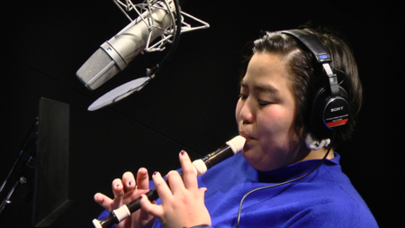 声の出演だけでなく、アニメのエンディングテーマ「みっちりねこマーチ2」では、リコーダーの演奏でも参加しています。