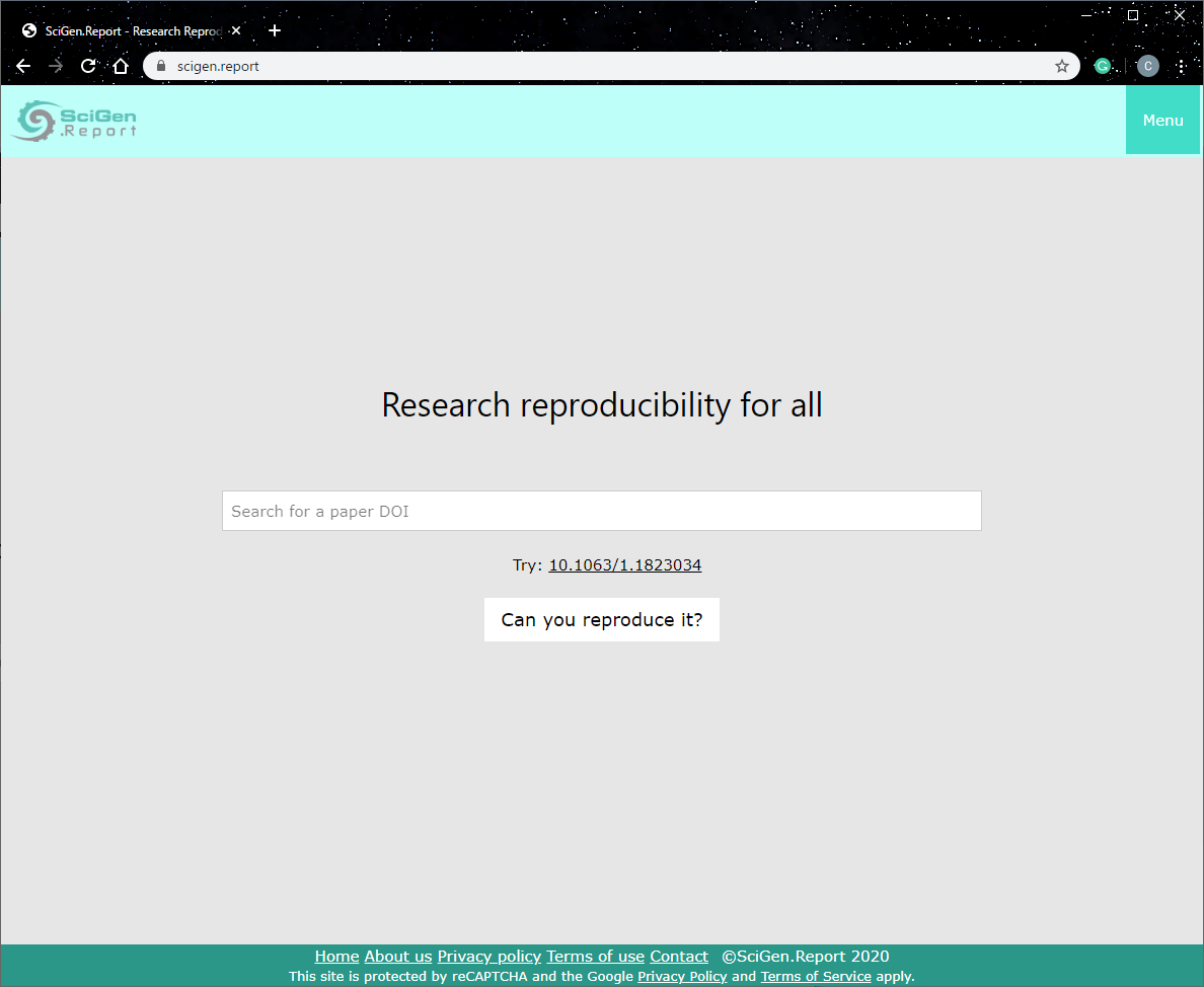 Top page. Users can search for a DOI using the search box.