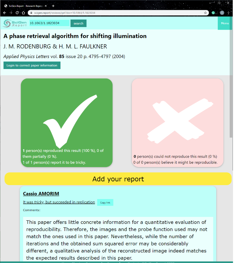 Paper's review page summarizing reproducibility and showing review comments.