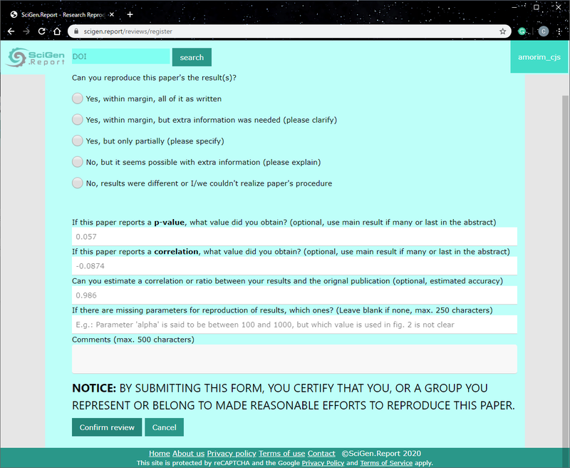 Review form to submit replication results.