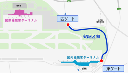 【実証区間】 福岡空港国内線・国際線連絡バス道路 約1.4km