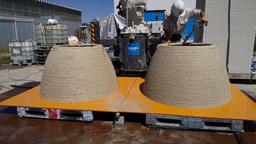 コンクリート3Dプリンターを用いたタンクの納品実績としては、500Lタンク(円筒型)、500L及び1000Lタンク(エッグ型)があるほか、中には木枠と鋼製枠を組み合わせた750Lタンク(アンフォラ型)という変わり種もあります。