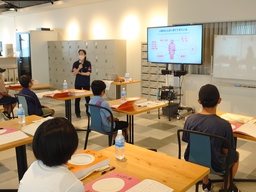 当日は、沖縄県内の小学校の児童10名が参加。(公社)沖縄県日本栄養士会副会長の笠原寛子様が講師となり、(公社)日本栄養士会が監修したたんぱく質の大切さを学ぶことが出来る体験型の教科書「たべる教科書」を用いて座学編と調理実習編の2部構成(各45分)で行いました。