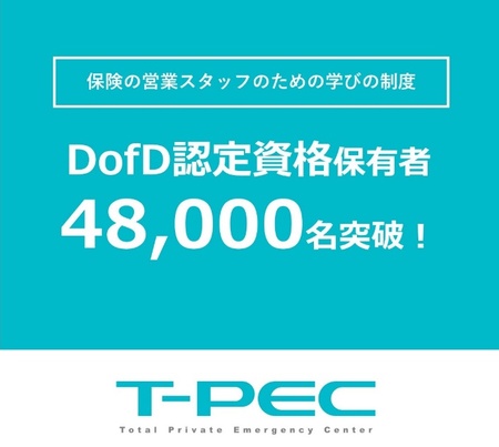 ティーペック株式会社(本社:東京都台東区、代表取締役社長:鼠家 和彦)が提供する保険の営業スタッフ(募集人)、代理店の方を対象としたDofD認定研修制度の「認定プロデューサー」等の資格保有者数が48,000名を突破したことを発表いたします。