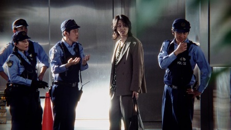 建物から出てきたところを警察官に突如職務質問される、カルマ。