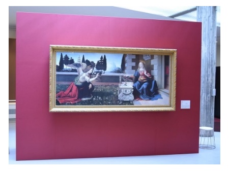 左より:「受胎告知」レオナルド・ダ・ヴィンチ(高精細複製品)/「風神雷神図屏風」俵屋宗達(高精細複製品)/「人」MACCIU