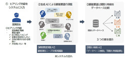 本システムはLLM(大規模言語モデル)※を利用した3つのAIから構成されています。営業担当がお客様の家族構成や住宅の好み、現在の住まいの悩みなどをヒアリングしてシステムに入力します(下図①) 。 「顧客要望深掘AI」がお客様の潜在的な要望を議論し示唆を出します(下図②) 。 その後「間取り検索AI」が検索し複数の間取り候補を選びます(下図③) 。 営業担当はAIが選んだ候補をベースにお客様に最適な間取りとライフスタイルがイメージできる提案をします。