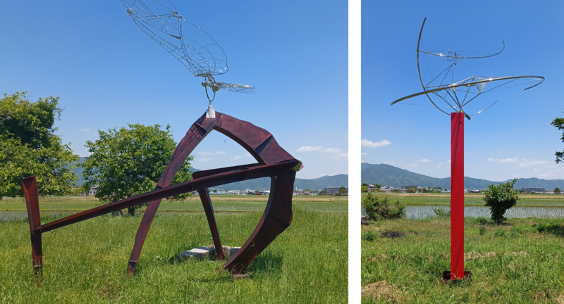 『風になるとき スカイビル』/『COSMOS スカイビル』2025 チタン合金、鉄(塗装)