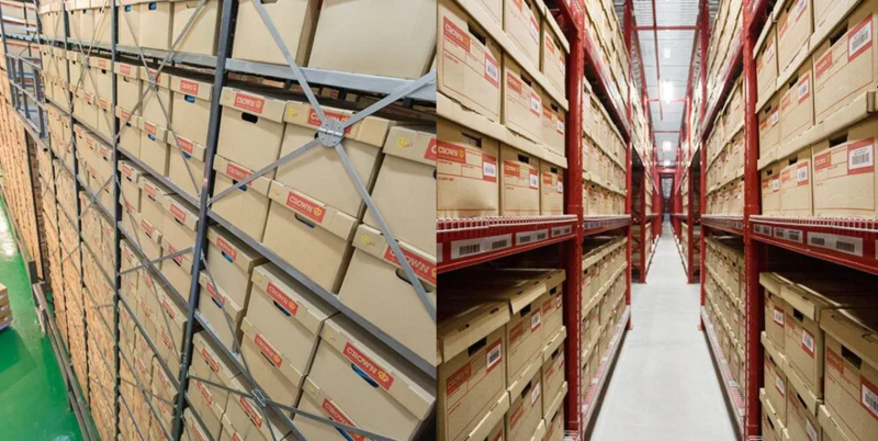 倉庫内には、破れ、潰れ、底抜けしそうな状態のままの箱が点在していました。日々の業務では、帳票類の箱が頻繁に手作業で入出庫されています(出庫しない箱も積み重ねているため、頻繁に出し入れ)ここで厄介なのが、既に破損している状態の箱や出し入れ積み重ね作業中に破損した箱の補修作業で、更に潰れた箱は常に上に置く必要があり(預かった箱で保管するが基本)、 現場では相当なストレスになっていました。