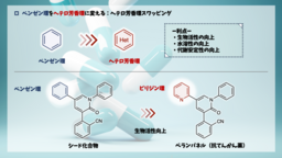既存の芳香環を、異なるヘテロ芳香環に入れ替える手法。薬の効力や安全性を高めるための手法の一種で、創薬研究において注目されています。