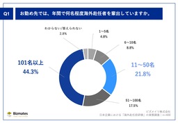 ■4割以上の企業が年間「101名以上」の海外赴任者を輩出、幅広い企業で人材派遣が進展