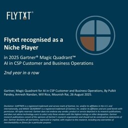 DUBAI, UAE, Sept. 30, 2025 /PRNewswire/ -- Flytxt, a leading provider of Enterprise AI for telecom and other subscription businesses, has been named for the second year in a row as aNiche Player in the Gartner Magic Quadrant 2025 for AI in CSP Customer and Business Operations. Flytxt AI is massively trained with trillions of real-world data, and is purpose-built to drive high-impact decisions and actions for CSPs across sales & marketing, product & pricing, and customer care.