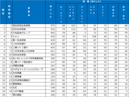 3年連続で総合1位となった明治安田生命保険をはじめ、生保がワンツーフィニッシュとなりました。