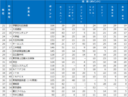 総合順位「-」は昨年調査で50位圏外。項目別順位「-」は昨年調査で20位圏外。