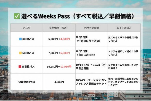 参 加 費:せとうち・香川ワーケーションWeeks Pass