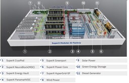 The SuperX Modular AI Factory is a full-stack ecosystem comprising multiple prefabricated core components, including: