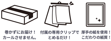 B3変形サイズ、大判の迫力のポスター“アートグラフィー”は高画質・高解像度でアートの持つ魅力を細部まで再現することができます。1回に5~15枚をご注文いただき、巻かずにお届けいたします。