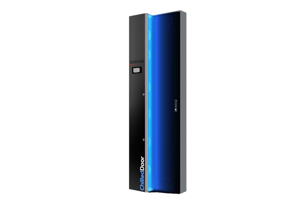 ChilledDoor®リアドア型空調機 リアドアという名称のとおり、サーバーラックの背面扉として搭載することができる空冷の装置。コールドプレートで除去しきれない熱を空気で冷やす。薄型でスリムな空調機であるため、設置面積が小さく、ホワイトスペースを節約できる。 |