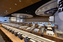 当店舗は、くら寿司史上最多となる338席と、最長約135mの回転ベルトを備えた、過去最大規模の店舗として設計し、サステナブルな設備を整えることで環境負荷の低減に配慮しております。また、通常の寿司メニューに加え、持続可能な漁業の推進に向けた取り組みの一環である、ニザダイなどの低利用魚を活用したサステナブルメニューや、大阪・関西万博に参加する70か国の代表的な料理を再現した特別メニューを通じて、お客様に新しい食体験をご提供しています。さらに、イートインのみだった特別メニューにおいて、お客様からテイクアウトのご要望を多数いただいたことから、5月より、お持ち帰りセットを全6種類販売するなど、多くの方にお楽しみいただいております。