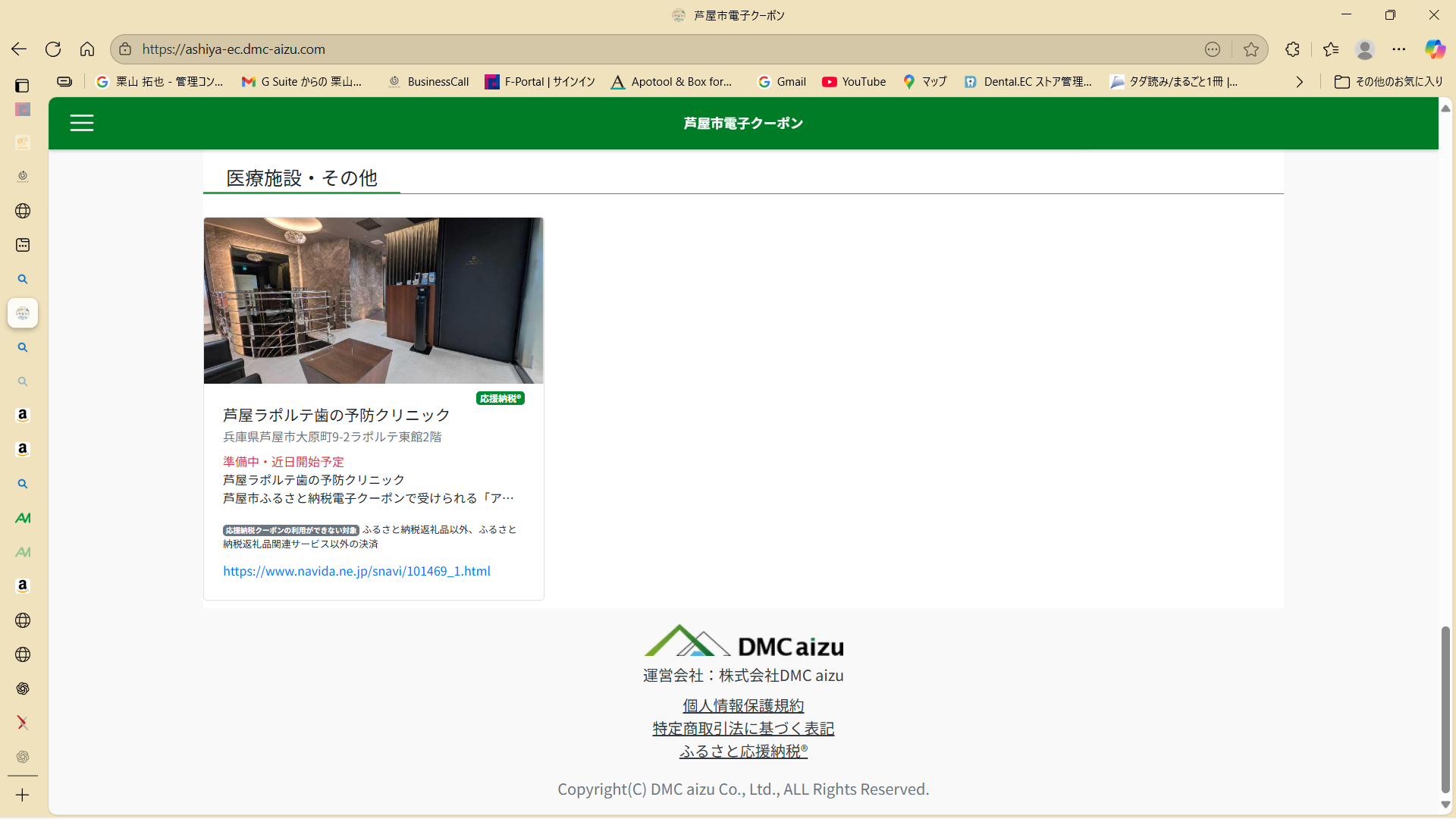 ふるさと応援納税電子クーポンの発行条件・有効期限・利用規約は、制度・自治体の定めに従います。最新情報は芦屋市および当社・クリニックの案内をご確認ください。