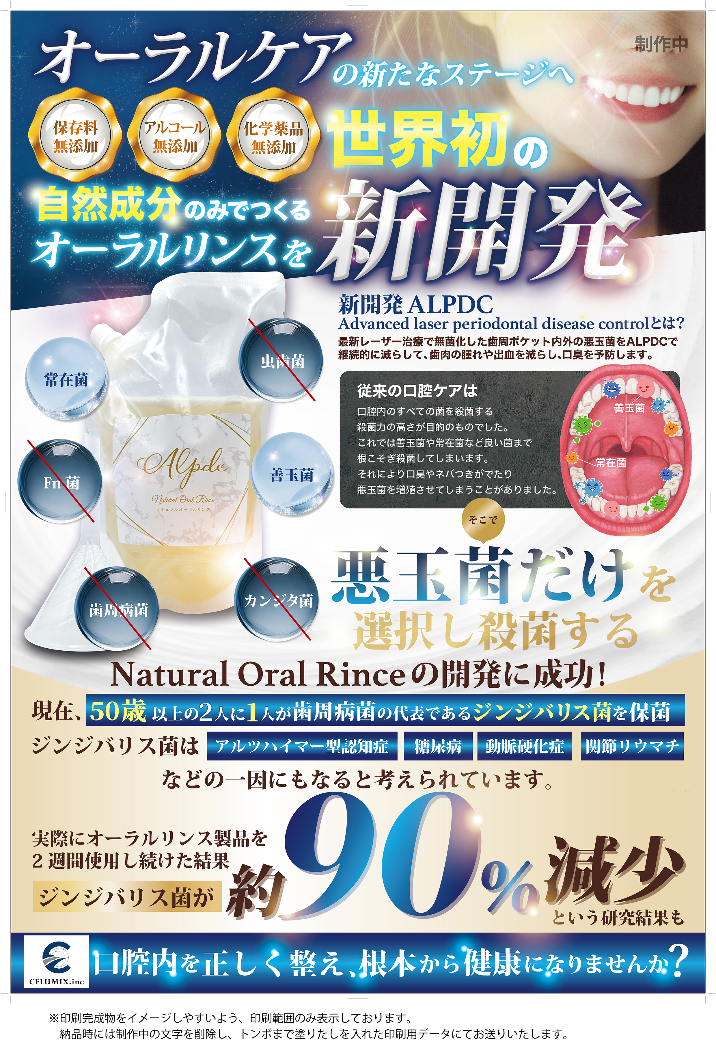 オーラルケア事業:独自成分ALPDC™を配合したマウスウォッシュ「ナチュラルオーラルリンス」等の研究開発・製造・販売