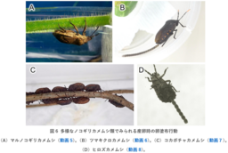 [2] 2018年12月28日 京都大学・森林総合研究所プレス発表「カメムシの卵が一斉に孵化する巧妙なメカニズムを発見 ―ある卵が割れた振動を合図にきょうだいの卵が孵化する―」https://www.ffpri.go.jp/press/2018/20181228/index.html