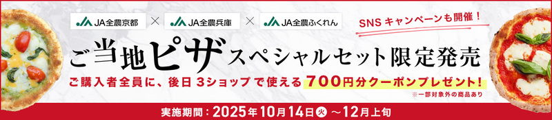 JA全農京都×JA全農兵庫×JA全農ふくれん 初コラボ! JAタウンで「ご当地ピザ」セットを販売