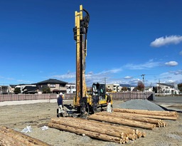 ■丸太打設軟弱地盤対策&カーボンストック工法※