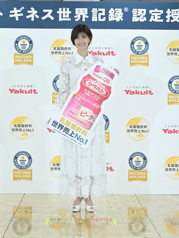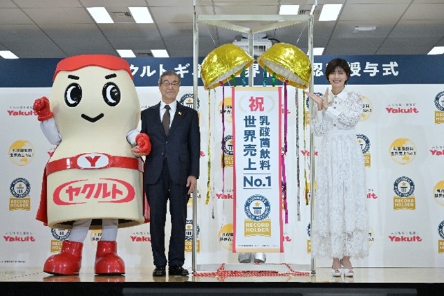 ヤクルトブランドが乳酸菌飲料 世界売上No.1としてギネス世界記録™に認定!内田有紀さんがくす玉で祝福!