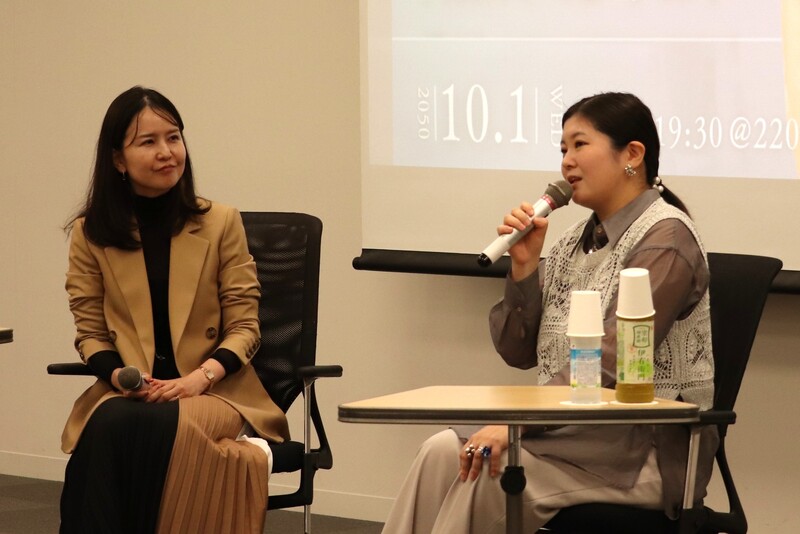 トークショーは宇宙分野等で活躍する新谷美保子弁護士との対談形式で進行しました。新谷弁護士から「正しさとは」と質問を受けると、吉田さんは「時代や立場で変わるけれど、虐げられず、差別されないことが正しいということは変わらないでほしいと思っている」と丁寧に言葉を選びながら答えていました。